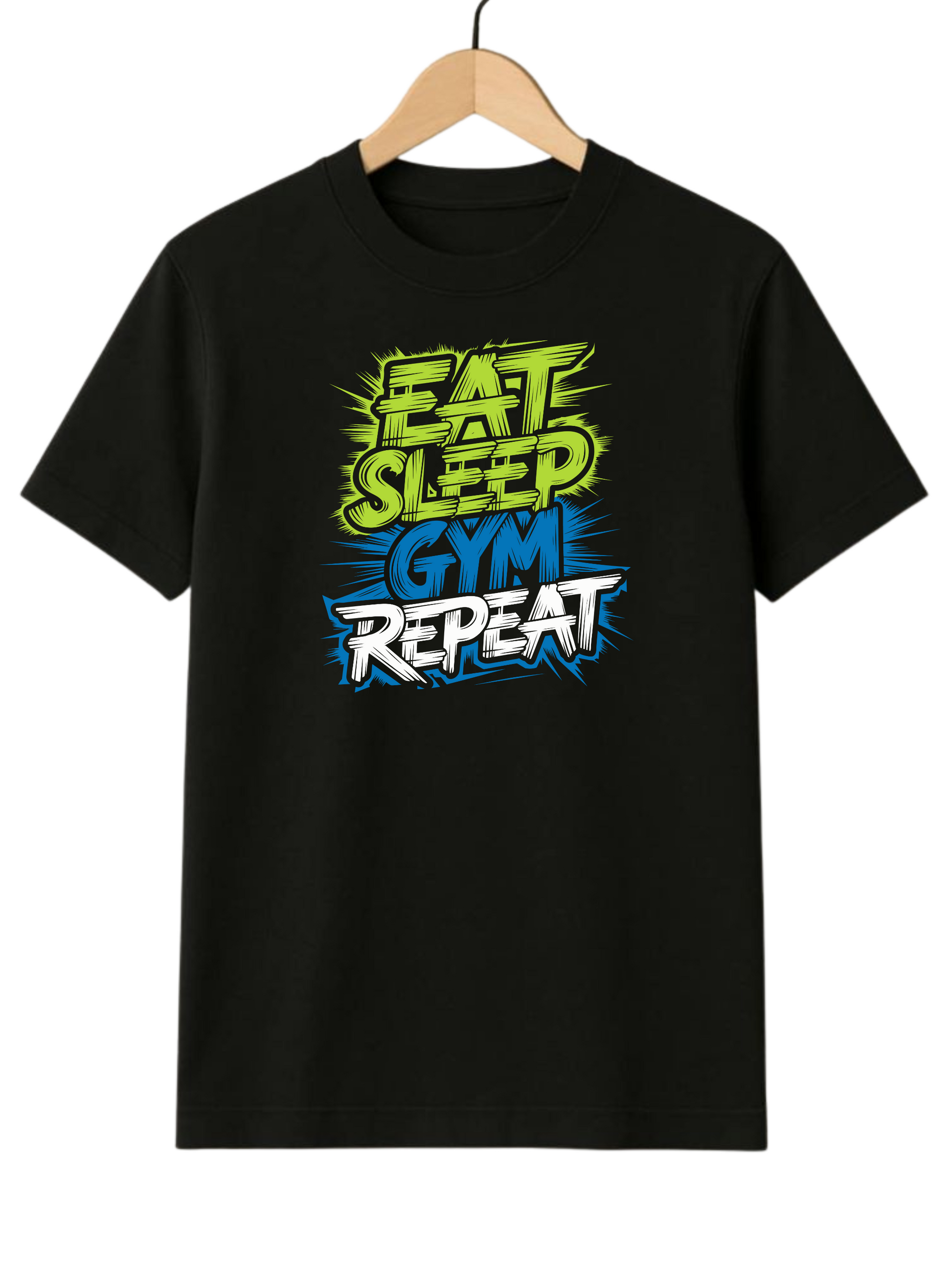 Eat Sleep Gym Repeat Regular Fit Black T-shirt