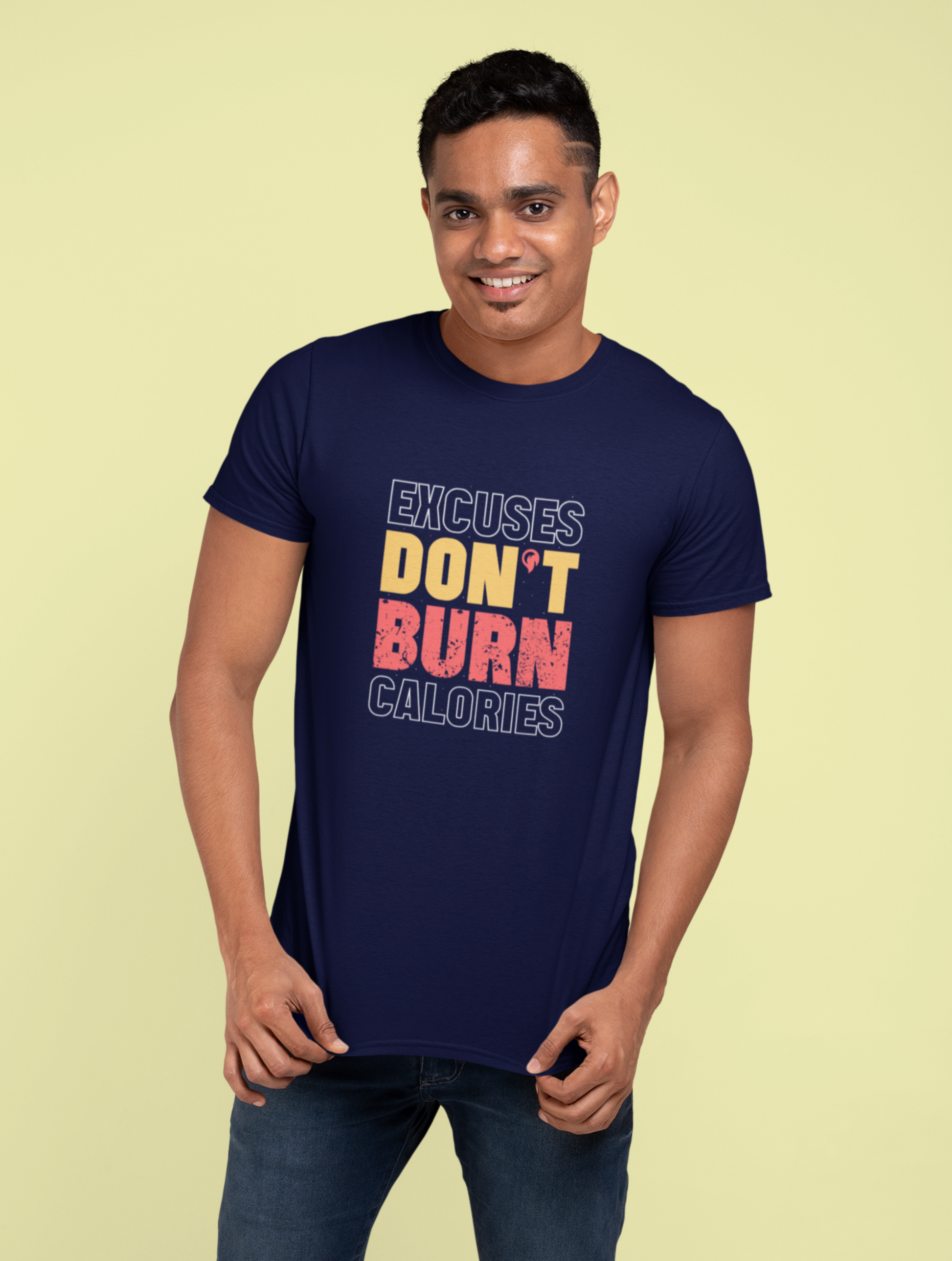 Excuses Don't Build Calories Regular Fit Navy Blue T-shirt