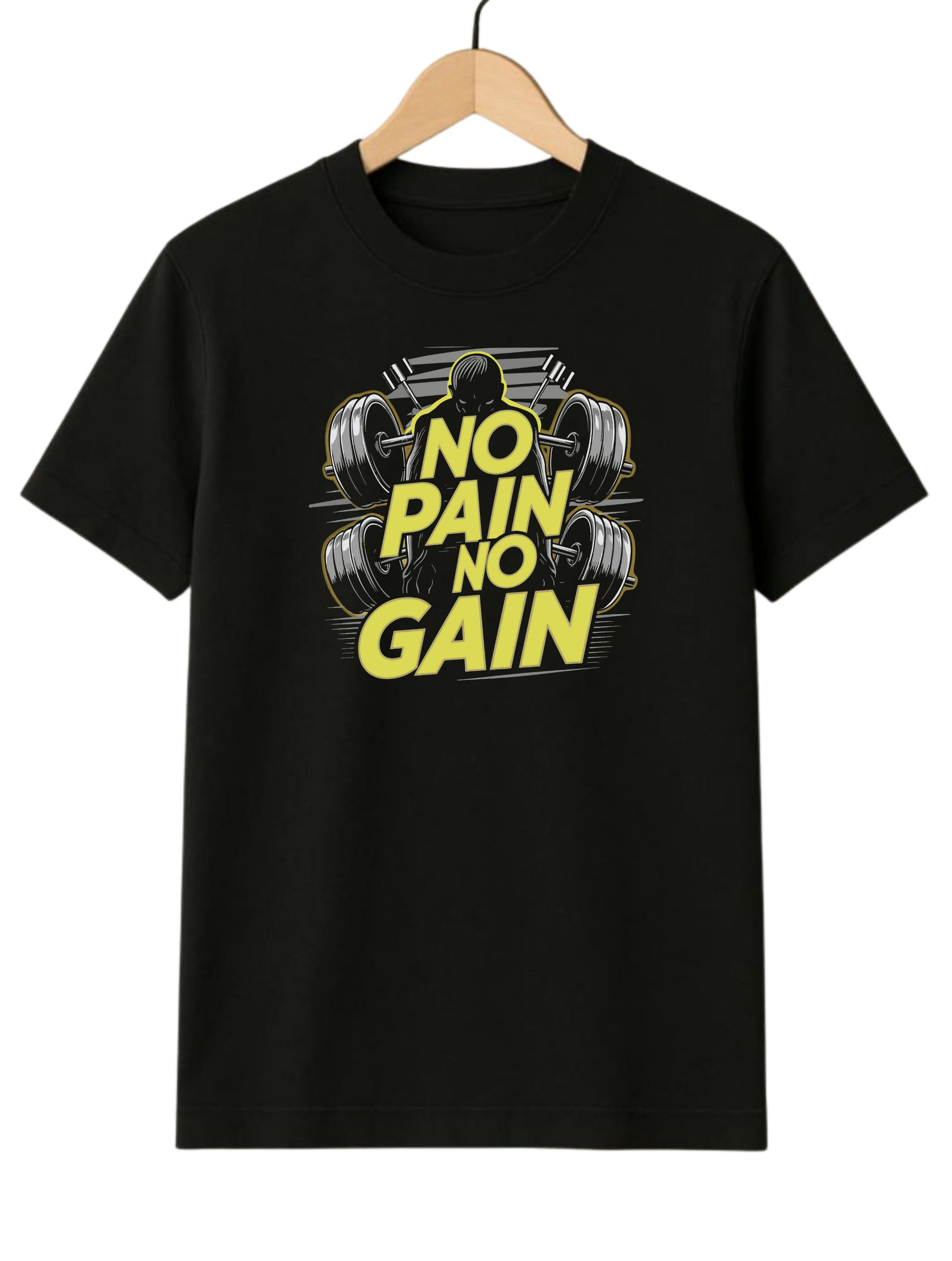 No Pain No Gain Dumbbell Gym Regular Fit Black T-shirt