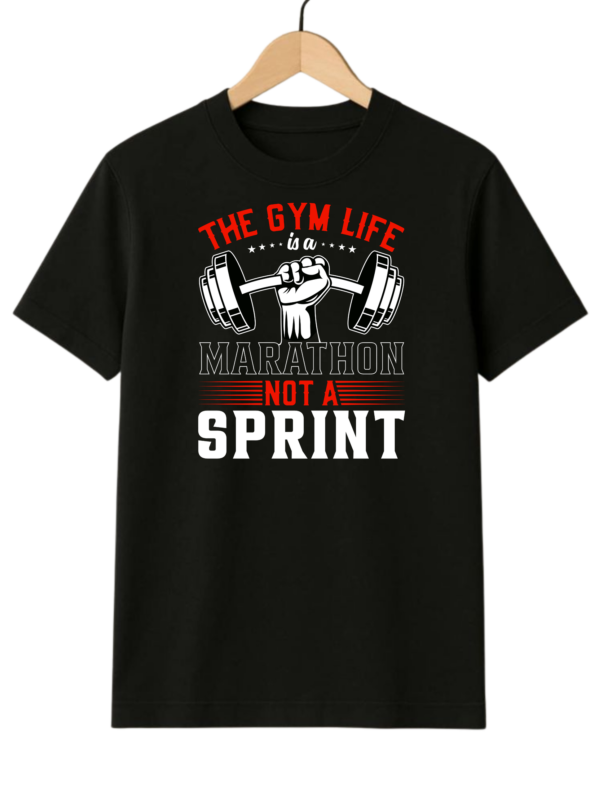 The Gym Life Is A Marathon Regular Fit Black T-shirt