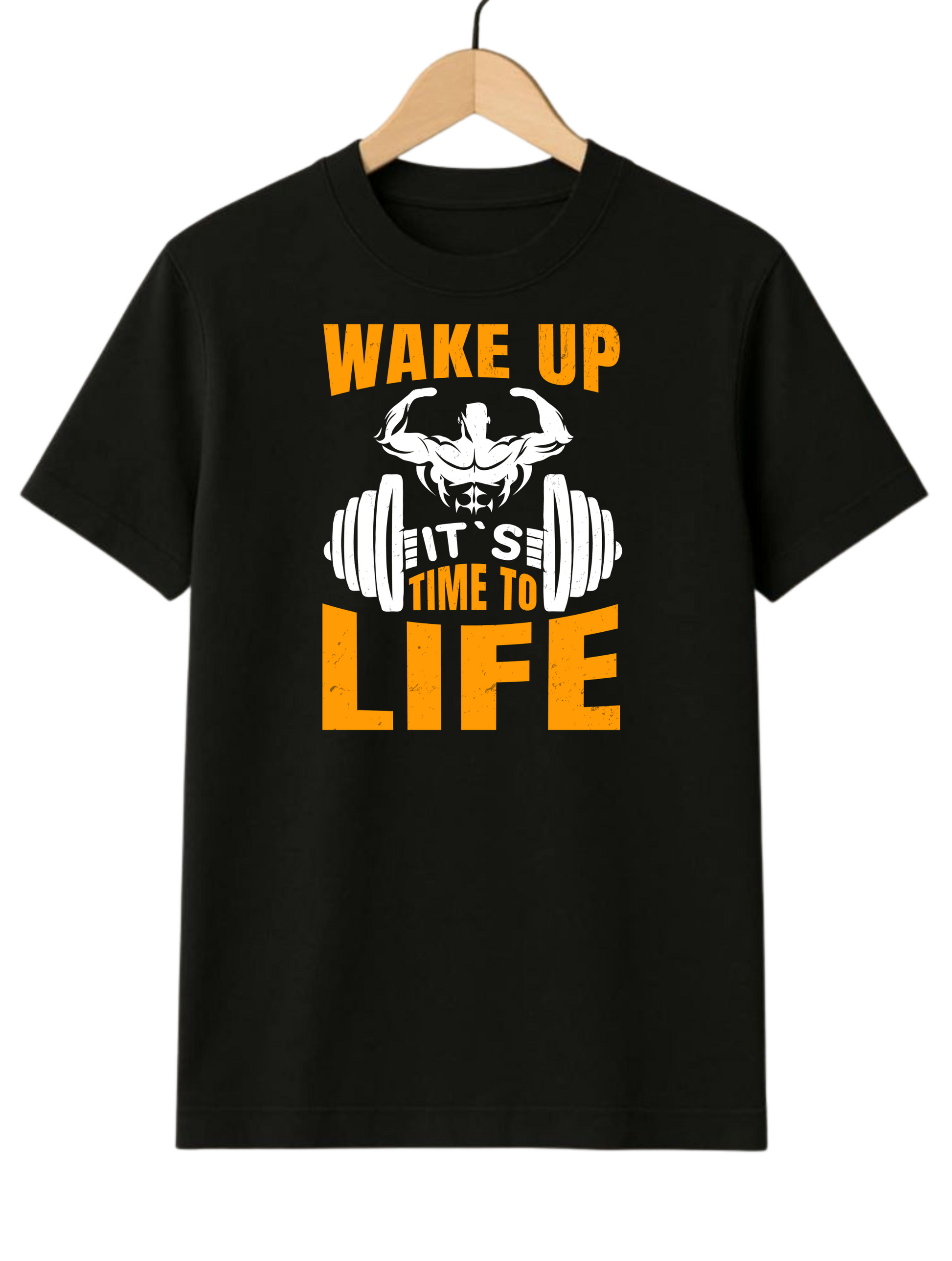 Wake Up It's Time To Life Regular Size Black T-shirt